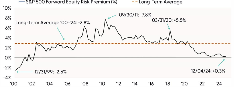 Low Equity Risk Premium Indicates Elevated Stock Valuations Relative to Bonds